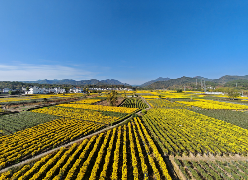 一花引領(lǐng),全域芬芳。如今,菊花種植產(chǎn)業(yè)已從鹽鋪村輻射至齊云山、萬安、藍田、源芳等多個鄉(xiāng)鎮(zhèn)。休寧縣依托優(yōu)質(zhì)鄉(xiāng)村旅游資源,引導(dǎo)企業(yè)延伸產(chǎn)業(yè)鏈條,大力發(fā)展菊花深加工,不斷提升產(chǎn)品附加值,走出一條農(nóng)文旅深度融合的特色發(fā)展之路。據(jù)統(tǒng)計,今年全縣菊花種植面積達1.81萬畝,年產(chǎn)值突破2.3億元。每到夏秋季節(jié),萬畝菊海白花似雪、黃花如金,既是扮靚鄉(xiāng)村的生態(tài)風(fēng)景線,更是帶動菊農(nóng)增收致富的“經(jīng)濟線”,讓“美麗風(fēng)景”真正轉(zhuǎn)化為惠民利民的“美麗經(jīng)濟”。、